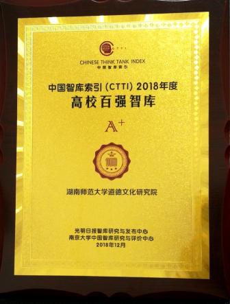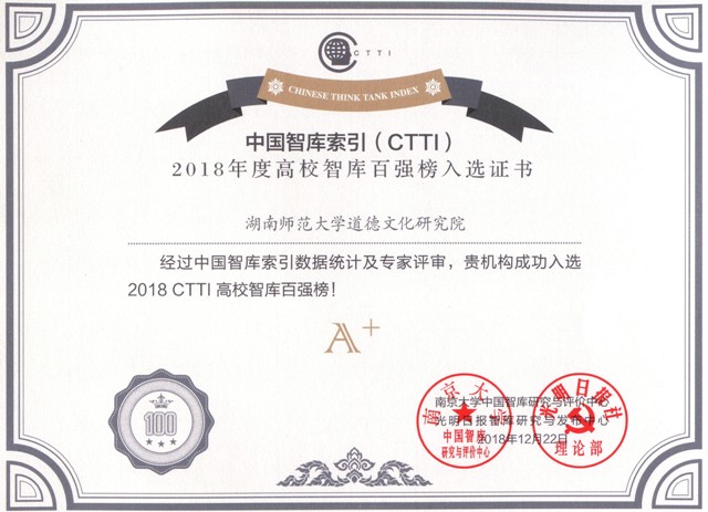 大会公布了“CTTI高校智库百强榜”,太阳网集团tcy8722道德文化研究院获评“CTTI高校智库百强榜”A+级智库,位列全国前25强。这也是湖南省唯一获评“A+”级的智库。同时,在全国文化与教育领域智库排名中,太阳网集团tcy8722道德文化研究院位列全国第八位。