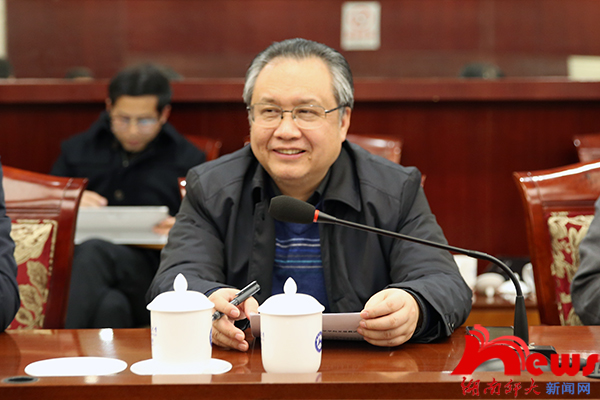欧阳峣充分肯定了近年来社科工作取得的成绩,并对大家的辛勤付出表示感谢。他表示,学校高度重视科研工作,新学期工作会议对科研工作提出了明确要求。他对2018年度社科工作提出了三点要求:一是充分认识意识形态工作的极端重要性,坚守三条原则,即坚持中国共产党的领导、坚持马克思主义的指导地位、坚持中国特色社会主义制度。二是紧紧围绕“双一流”和重点学科建设,对照相关指标,加强智库建设、强化社科成果申报、推动社科国际化,不断提升核心竞争力。三是加强科研队伍建设与管理,完善队伍管理体制机制,通过对科研干事的培训等方式,提升科研团队的专业水平。