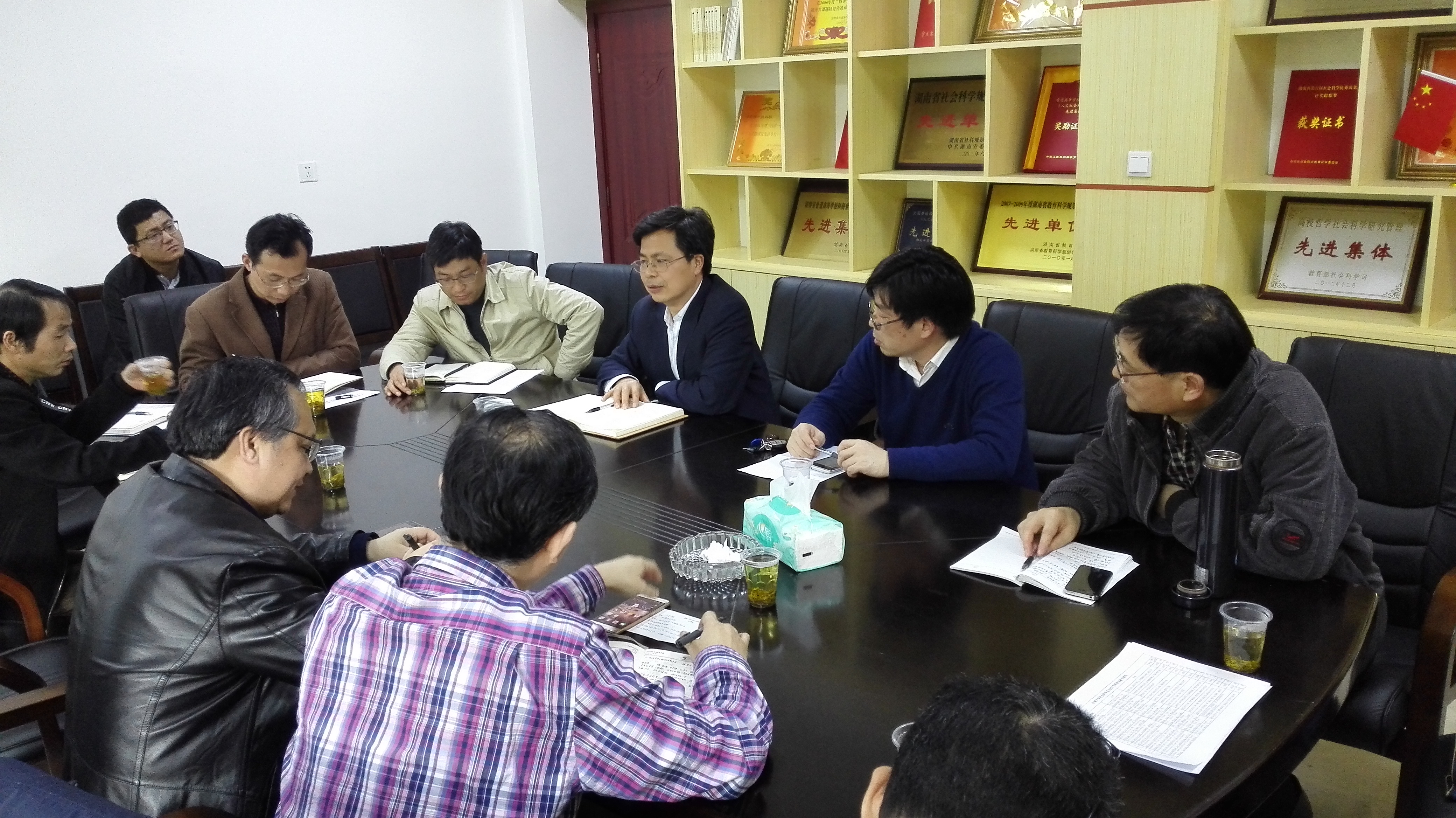 4月13日下午,中南大学科研部副部长兼人文社科办主任、中南大学领导力与组织绩效研究中心主任彭忠益教授、湖南大学社会科学处处长侯俊军教授应邀来太阳网集团tcy8722进行经验交流。副校长欧阳峣出席交流会议。会议由社会科学处处长杨合林主持。