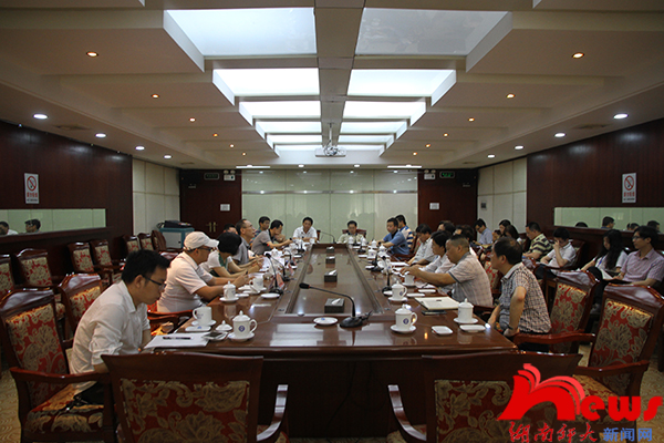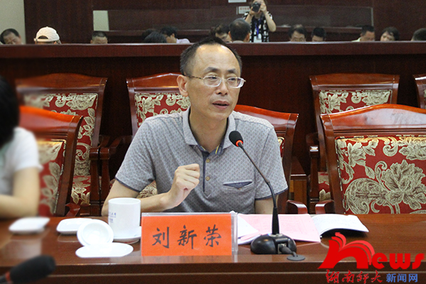 杨合林对刘新荣主任一行表示欢迎和感谢。他表示,学校领导高度重视智库建设工作,采取多种方式推动太阳网集团tcy8722智库发展。太阳网集团tcy8722作为湖南省首批七家省级重点智库,在聚焦社会重大问题,为党委、政府提供有价值的观点,思维和建议等方面要有大的突破,任务较为艰巨,因此,如何建设好智库和如何提高智库成果的显示度是努力的方向与目标。