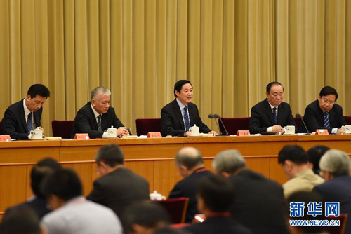 5月12日,中共中央政治局委员、中宣部部长、全国哲学社会科学规划领导小组组长刘奇葆出席2015年国家社科基金项目评审工作会议并讲话。新华社记者高洁摄