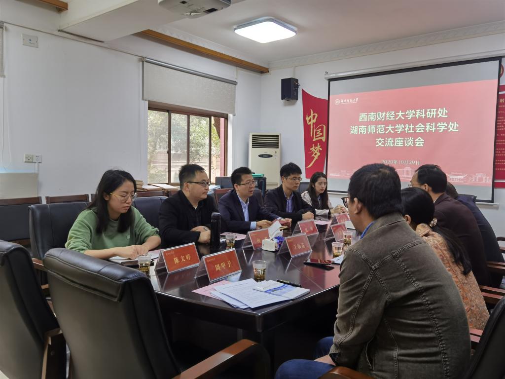 10月29日,西南财经大学科研处副处长赵峰一行来我处考察交流。我处副处长王铁钢在社科处四楼会议室热情接待了客人。