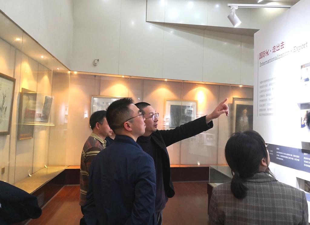美术学院院长李少波陪同调研组参观了美术学院博物馆,介绍了学院工作国际文化交流的丰硕实绩,他表示学院历来高度社会服务,将进一步深化建设学院的社科普及工作。