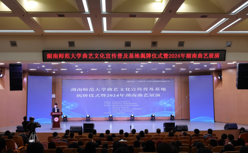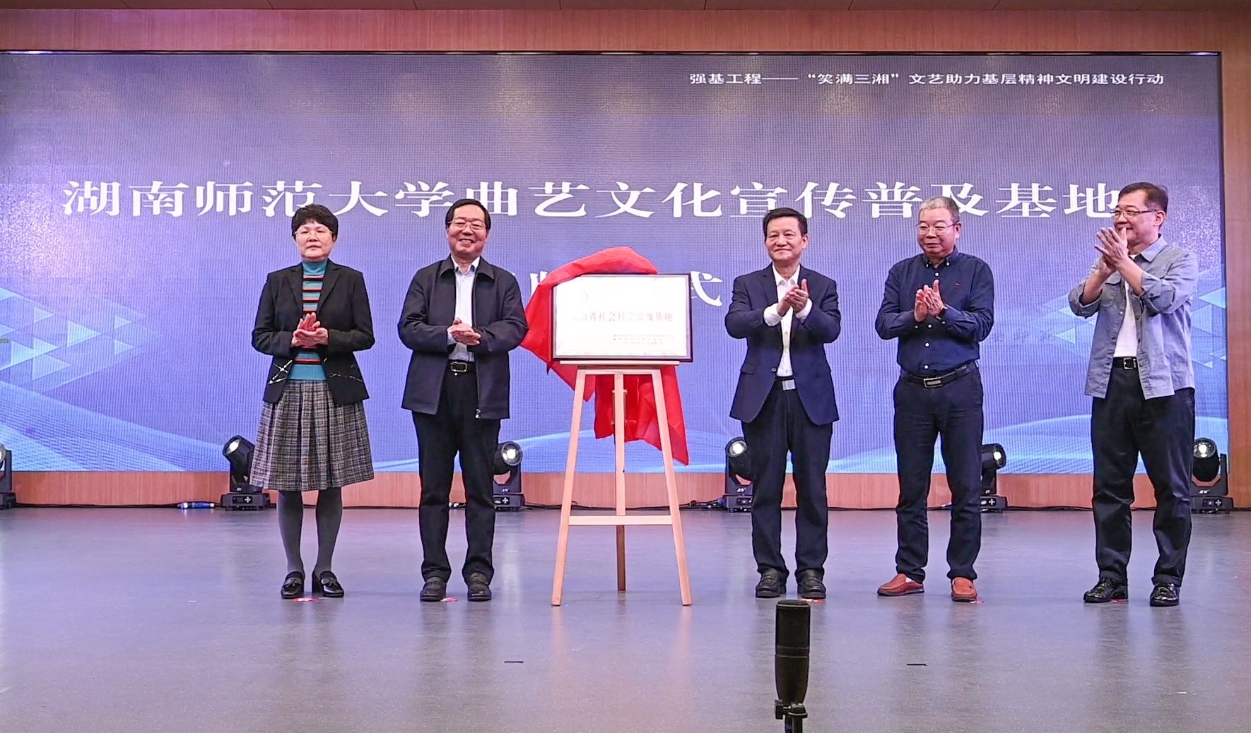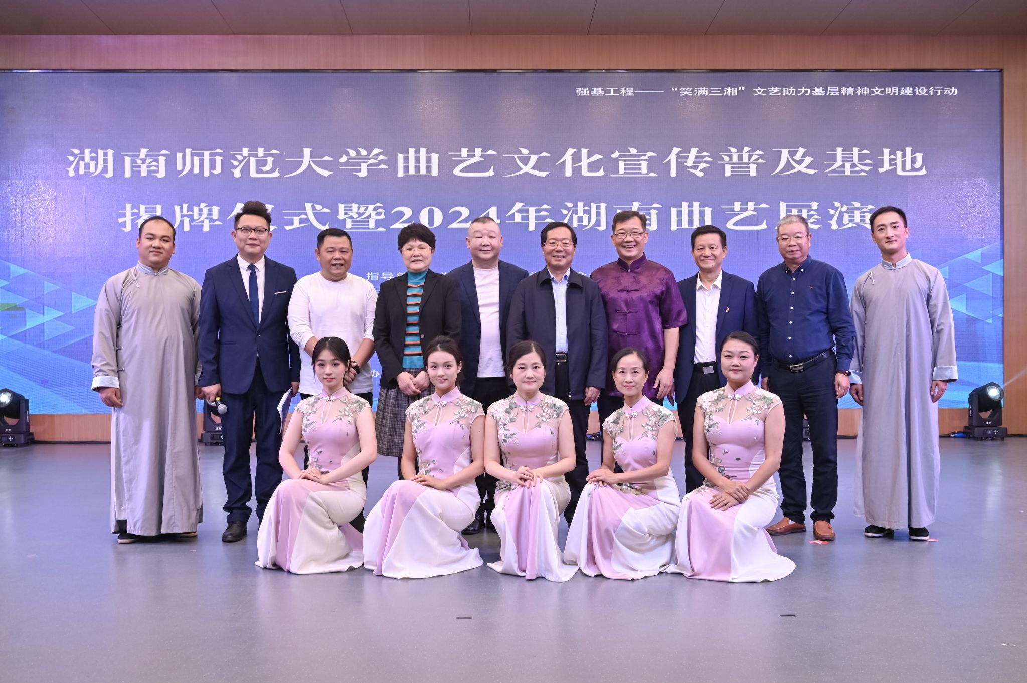 (供稿 音乐学院 记者 黄依依 李琳)11月11日,湖南省社科普及基地湖南师范大学曲艺文化宣传普及基地揭牌仪式暨2024年湖南曲艺展演在太阳网集团tcy8722音乐学院举行。省社科联党组书记、副主席胡代松,副主席贺建湘,太阳网集团tcy8722党委书记、欧洲科学院院士蒋洪新,党委副书记周俊武出席会议。