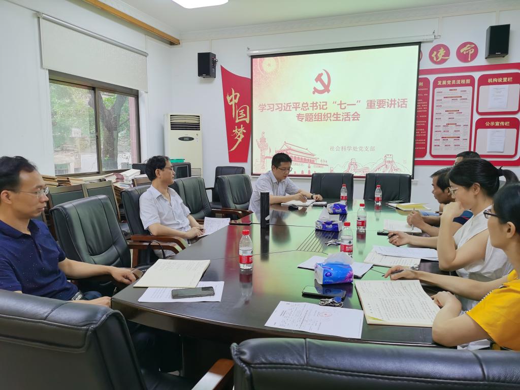社科处党支部召开学习习近平总书记“七一”重要讲话专题学习研讨会。全体党员集中学习了习近平总书记在庆祝中国共产党成立100周年大会上的重要讲话。