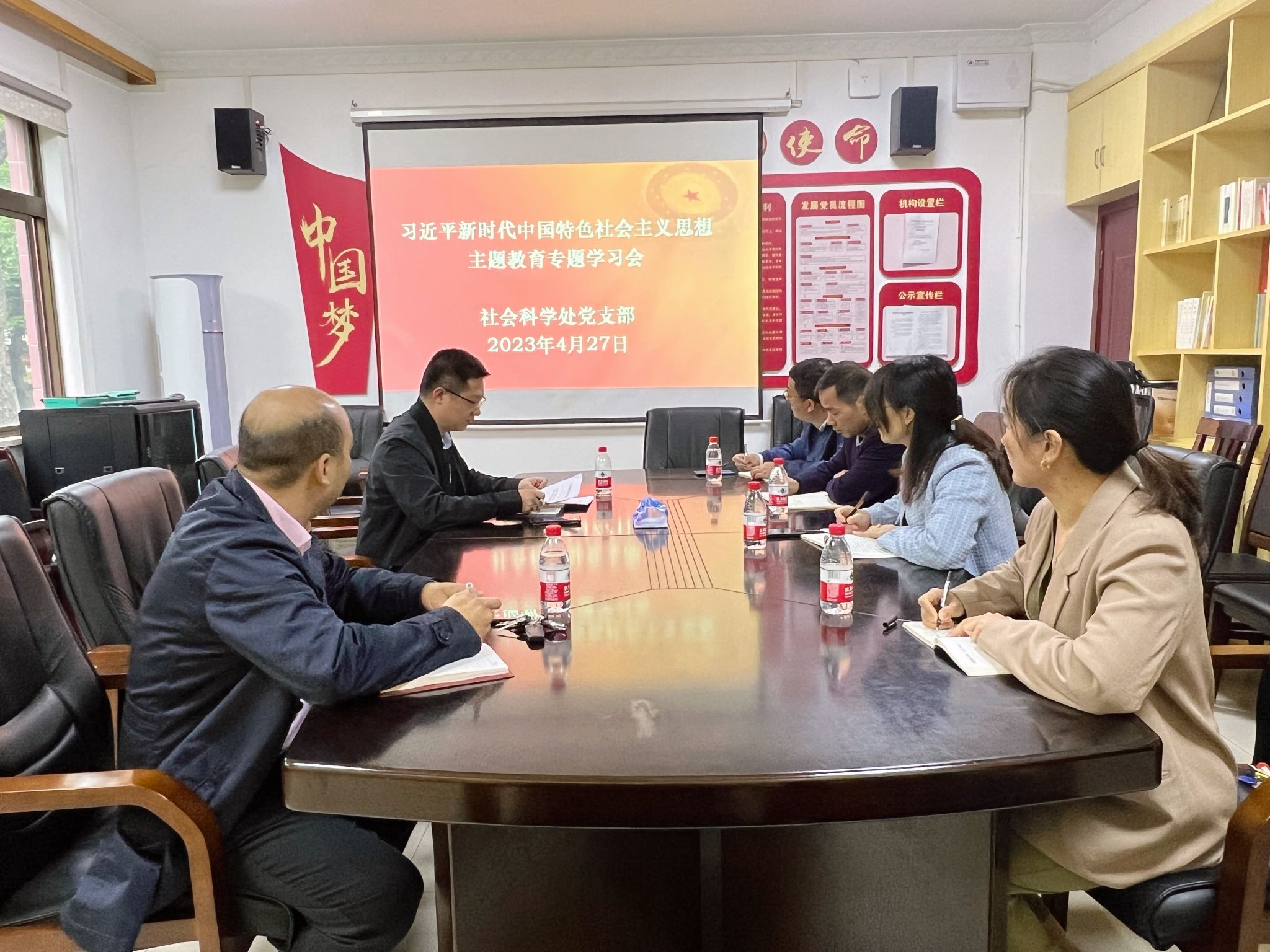 会议指出,在全党深入开展学习贯彻习近平新时代中国特色社会主义思想主题教育,是以习近平同志为核心的党中央为全面贯彻党的二十大精神、深入推进新时代党的建设新的伟大工程、动员全党同志为完成党的中心任务而团结奋斗所作的重大部署。社科处全体党员干部要深刻认识开展主题教育的重大意义,增强政治自觉、思想自觉和行动自觉,牢牢把握目标要求,把理论学习、调查研究、推动发展、检视整改贯通起来,完成好规定动作和自选动作,在以学铸魂、以学增智、以学正风、以学促干上见行动、出实效,推动学校科研工作高质量发展。